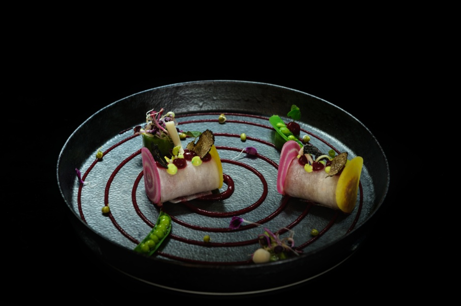 MENIU TRUMPAI. Raimundas kurdamas patiekalus nesivadovauja vienos pasaulio virtuvės skoniais. Jis mėgsta eksperimentuoti, tačiau lietuviškos gamtos dovanos yra jaučiamos daugelyje jo patiekalų. Čia atvykstantys klientai dažniausiai būna iki soties prisiragavę gurmaniškų patiekalų, tad jais jų nebenustebinsi. O štai eksperimentai su vietiniais, atrodytų, įprastais, tačiau tarpusavyje kūrybiškai sukombinuotais produktais gali net labai sužavėti. Taip pat R. Dambrauskas mėgsta jungti ir gerai žinomas pasaulio virtuves – tokie deriniai irgi susilaukia daug susidomėjimo. Pavyzdžiui, klasikinę prancūzų su Pietryčių Azijos arba prancūzų ir indišką ir pan.
