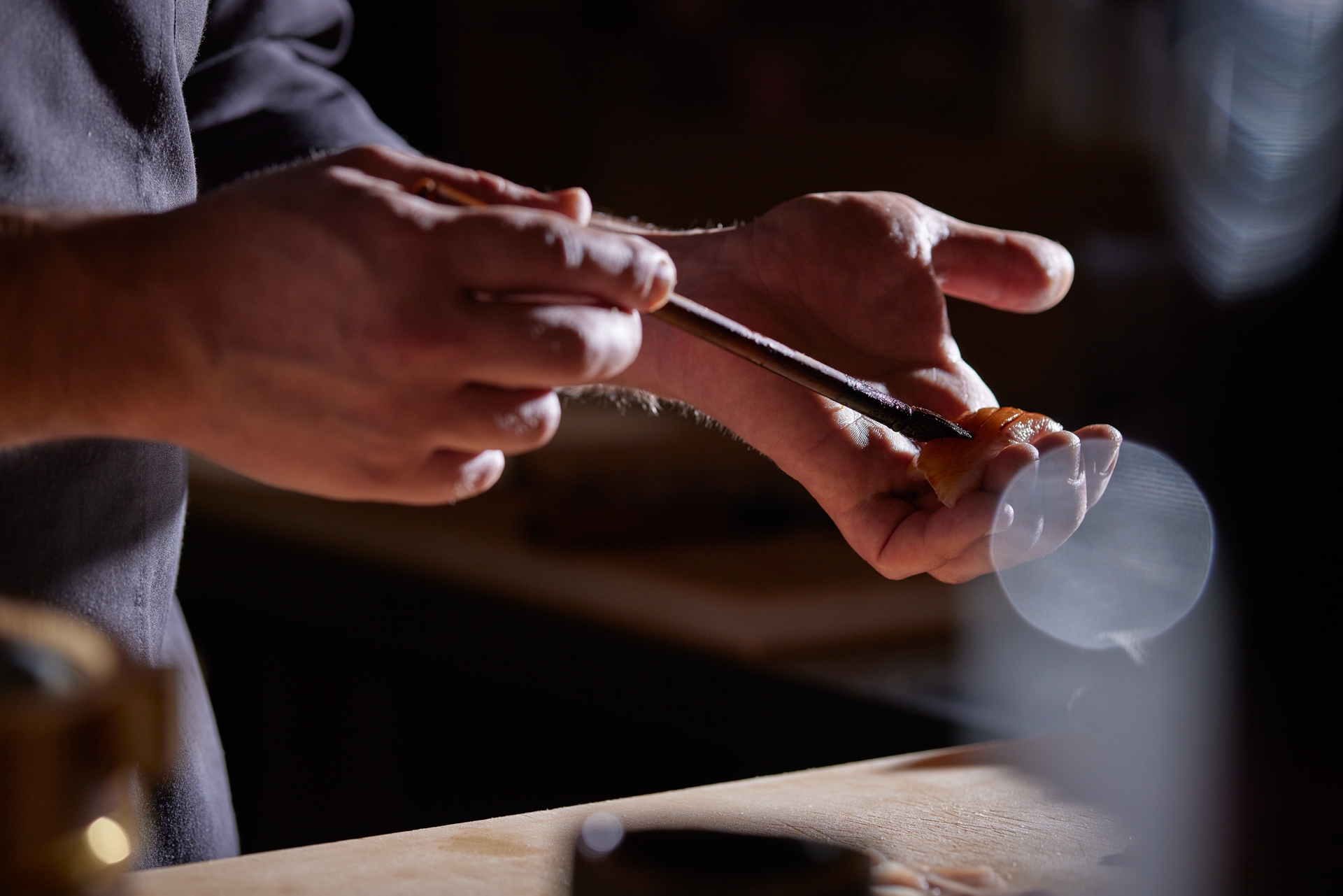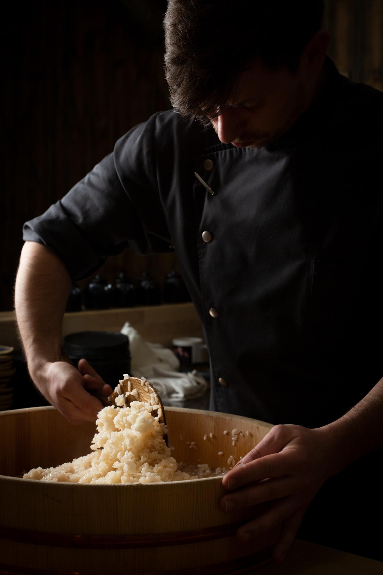 KAS DIRBA VIRTUVĖJE? Restorano „Narushi“ įkūrėjas Karolis yra dirbęs žinomuose Londono restoranuose, kur ir sukaupė virtuvės patirtį. Pradėjo nuo indų plovėjo pozicijos, kartu stebėjo, kaip vyksta darbas virtuvėje ir neilgai trukus pats ten atsidūrė. Pirmoji profesionali virtuvė, kurioje teko dirbti – „Nobu Park Lane“, tada įvertinta „Michelin“ žvaigžde. Karolis sako, kad veikiausiai ten pamilo japonišką virtuvę ir jos tradicijas, kurias dabar, kartu su keturiais komandos nariais, ir stengiasi perteikti Vilniuje ir Nidoje.